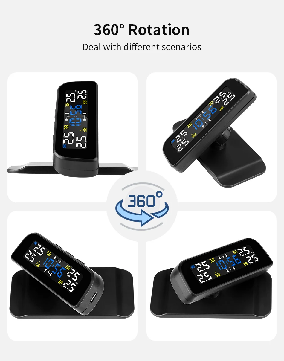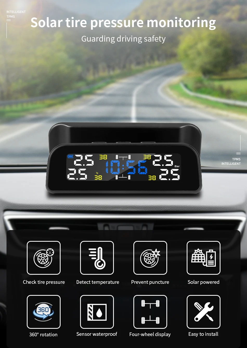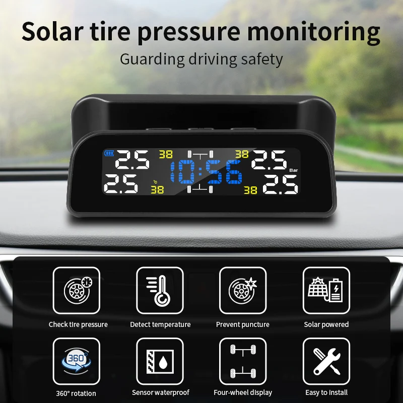 Система контроля давления в шинах на солнечной батарее, с часами, T...