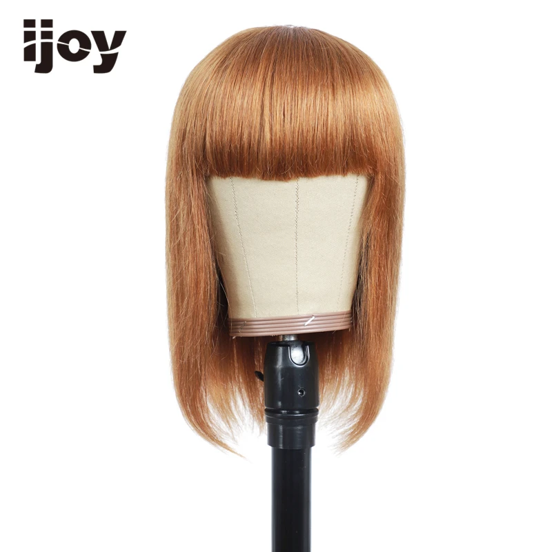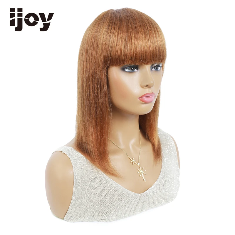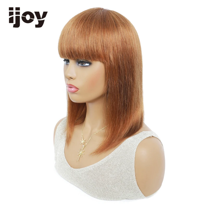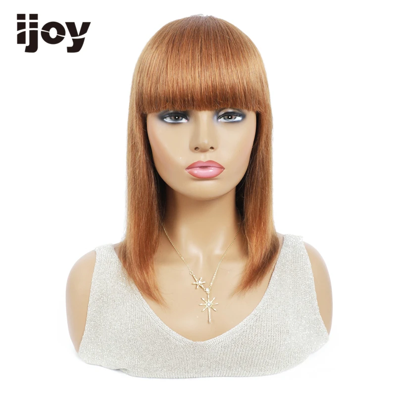 Парик из человеческих волос с челкой, прямые парики боб, цветные коричневые карамелевые бразильские волосы, парики для черных женщин, не Реми IJOY