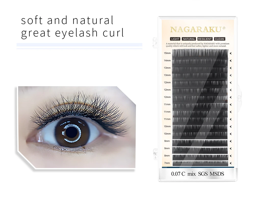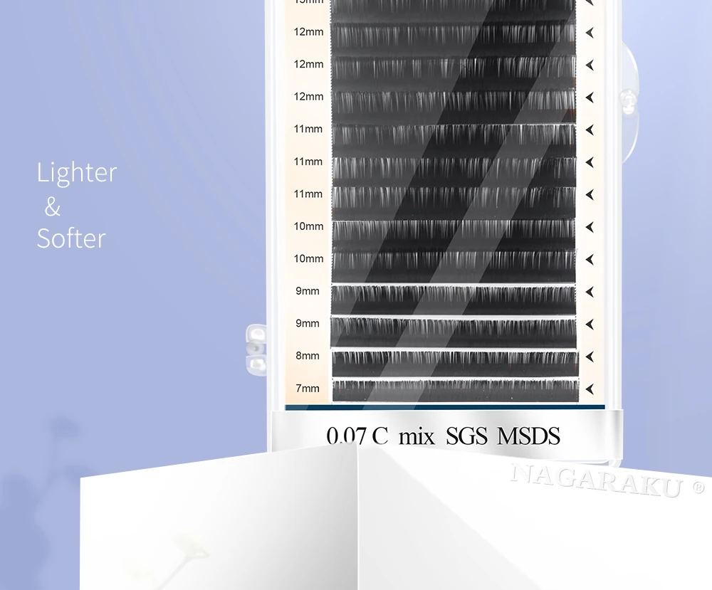 * NAGARAKU исключительно исследует и развивает материал второго поколения, содержит специальные ингредиенты VIMOKO, более высокого качества, супер мягкий и натуральный;* Стабильный отличный стандарт завитков, все ресницы были стерилизованы на 135 градусов в течение более 2 часов;* Естественный длинный конический стиль, более легкий и мягкий;* Обои с серебряной фольгой, без остатка, можно использовать повторно;