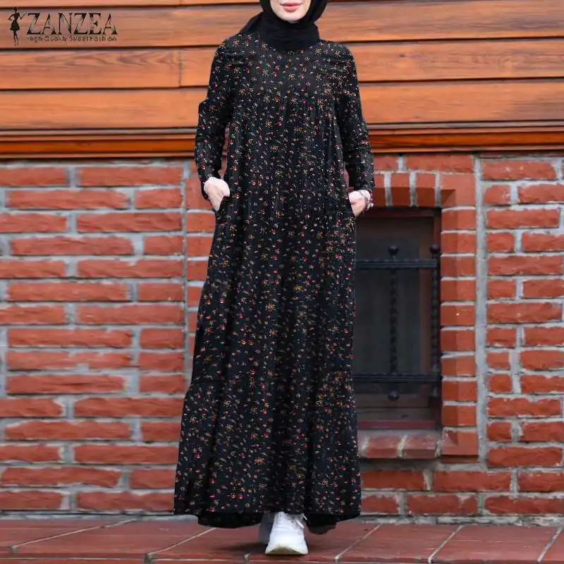Платье-сарафан женское, с цветочным принтом и длинным рукавом, весна 2021