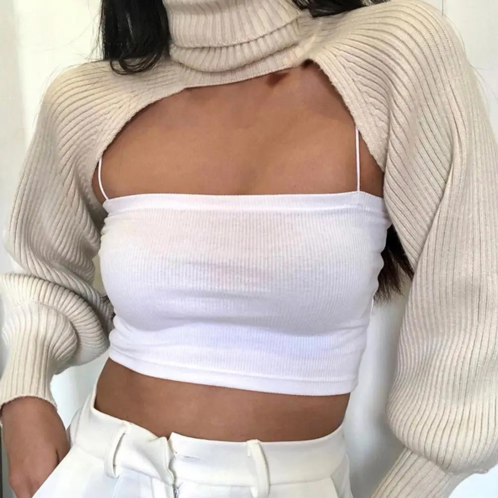 Осень Поддельные меховой воротник с высоким, плотно облегающим шею воротником для женщин пуловер с длинными рукавами вязаный свитер с ложным воротничком ветрозащитная Манишка эластичный съемный воротник рубашки