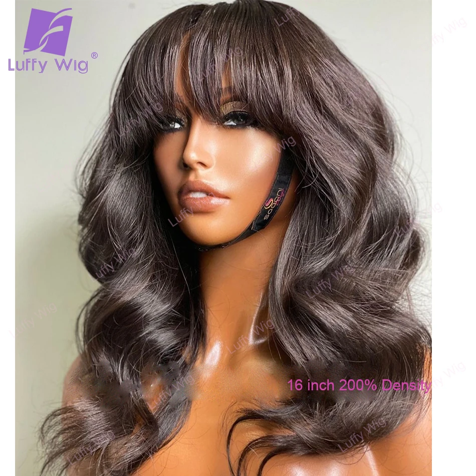 200 плотные волнистые человеческие волосы, парик с челкой, бразильские волосы без повреждения кутикулы, парики машинной работы, без клея для черных женщин Luffy