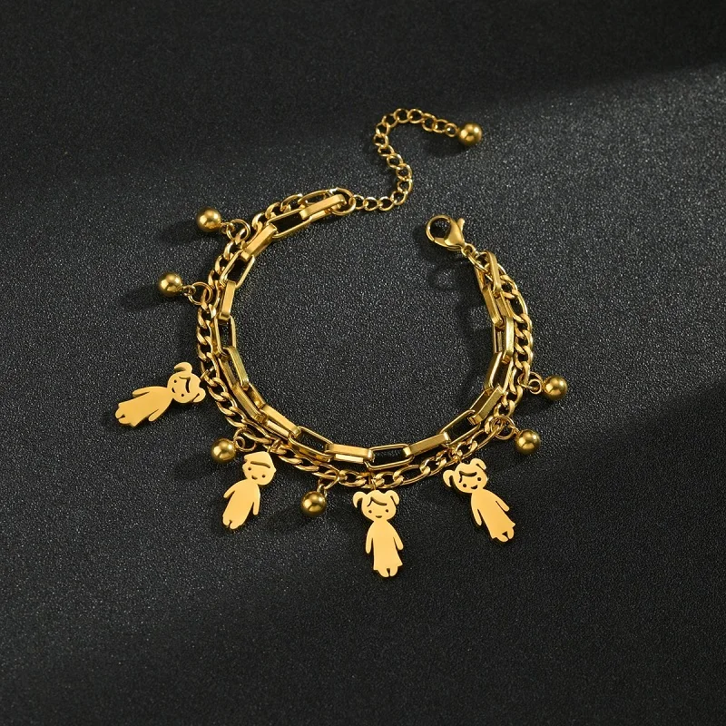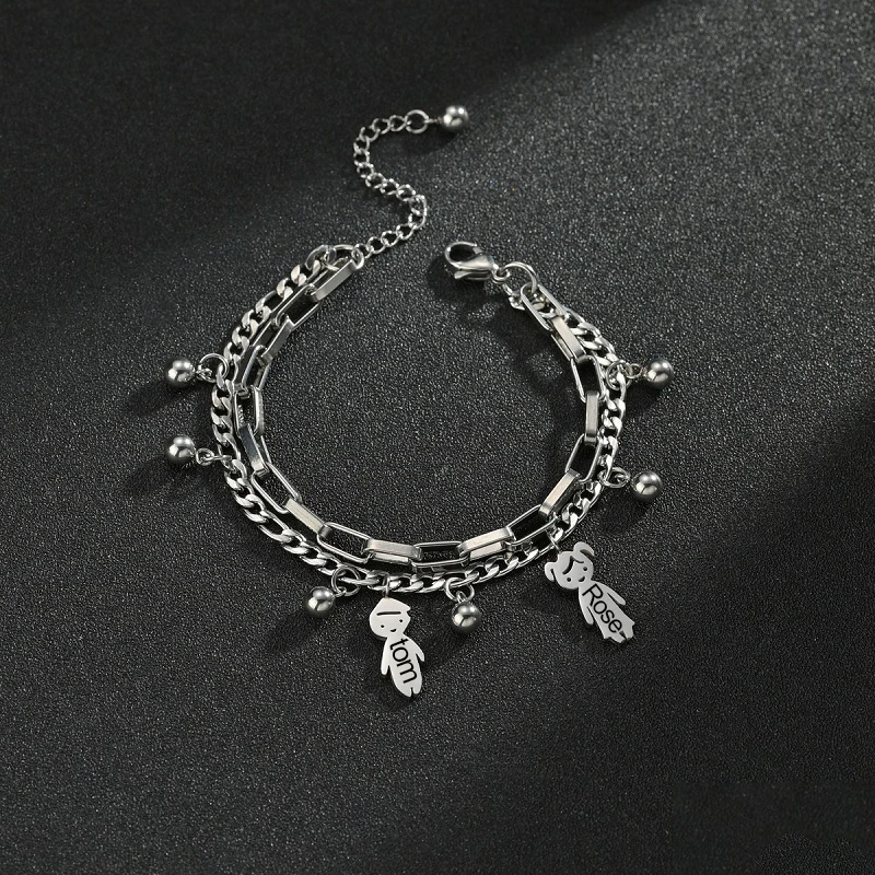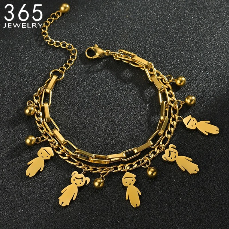 Двухслойный браслет-цепочка с гравировкой имени, персонализированный золотой браслет из нержавеющей стали с буквами под заказ, Подарочные ювелирные изделия