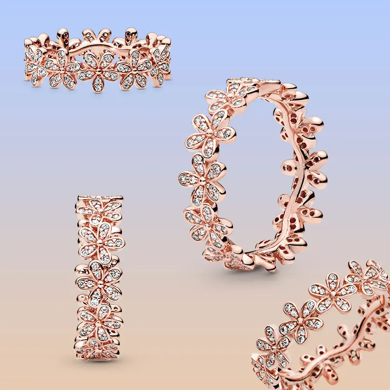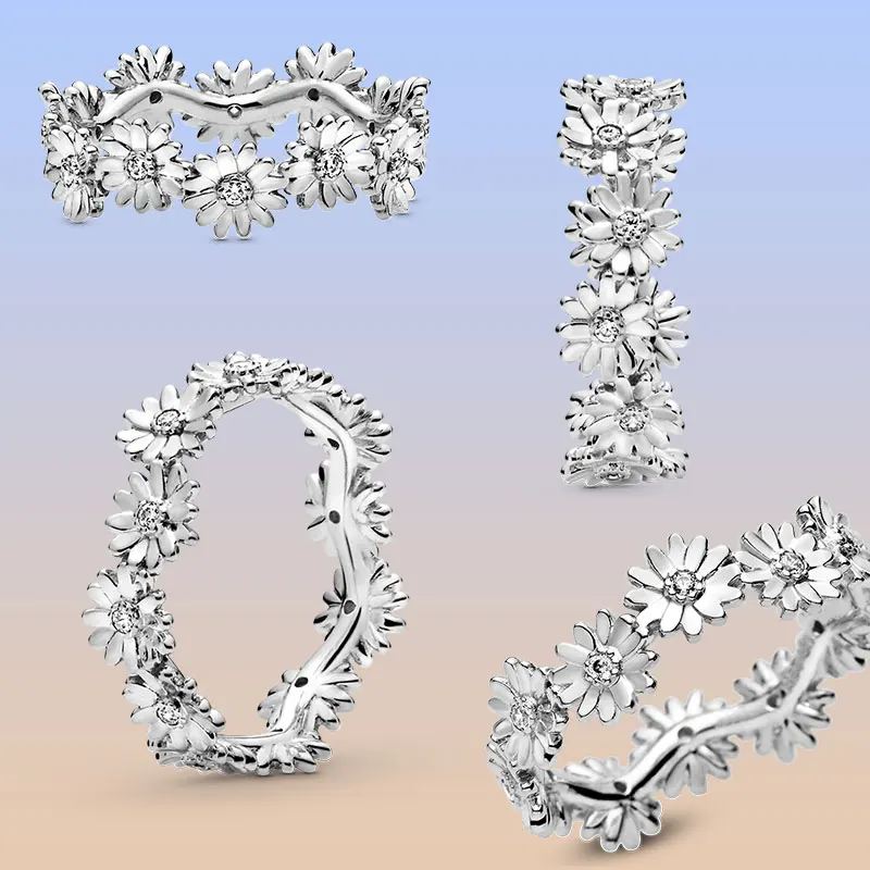 Женское витое кольцо из серебра 925 пробы с бесконечным сердцем и маргариткой