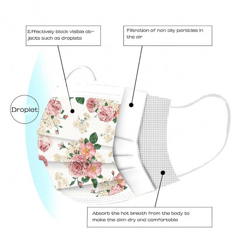 50100 шт. одноразовые дыхательные аппараты для взрослых; Медицинская маска для лица маска Цветочный принт для взрослых; Сезон весна; Маска 3 Слои защита уход за кожей лица маска Mascarillas