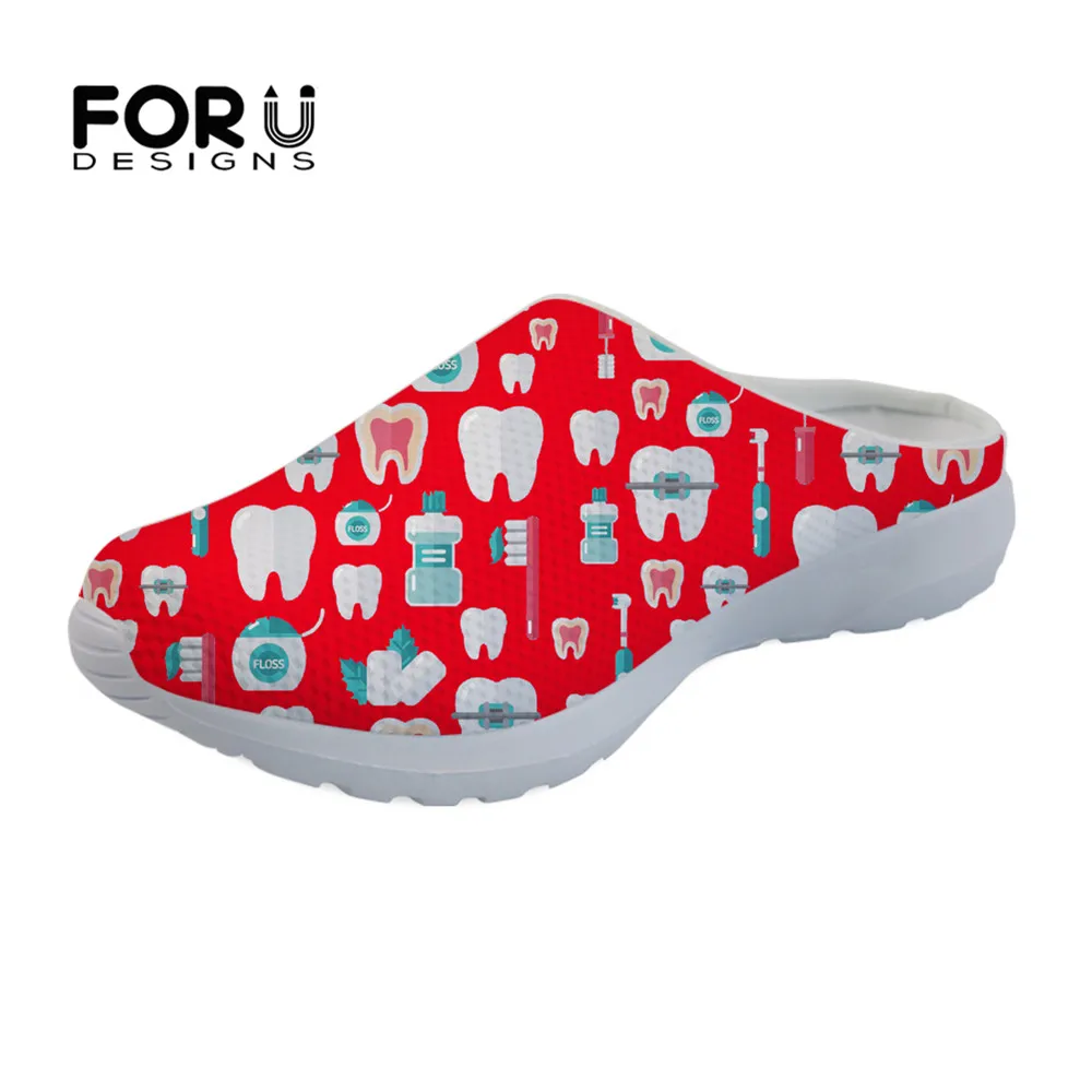 Женские летние шлепанцы FORUDESIGNS, Повседневные Дышащие сетчатые сандалии с 3D рисунком дантиста, слипоны для дам, плоская подошва, 2021