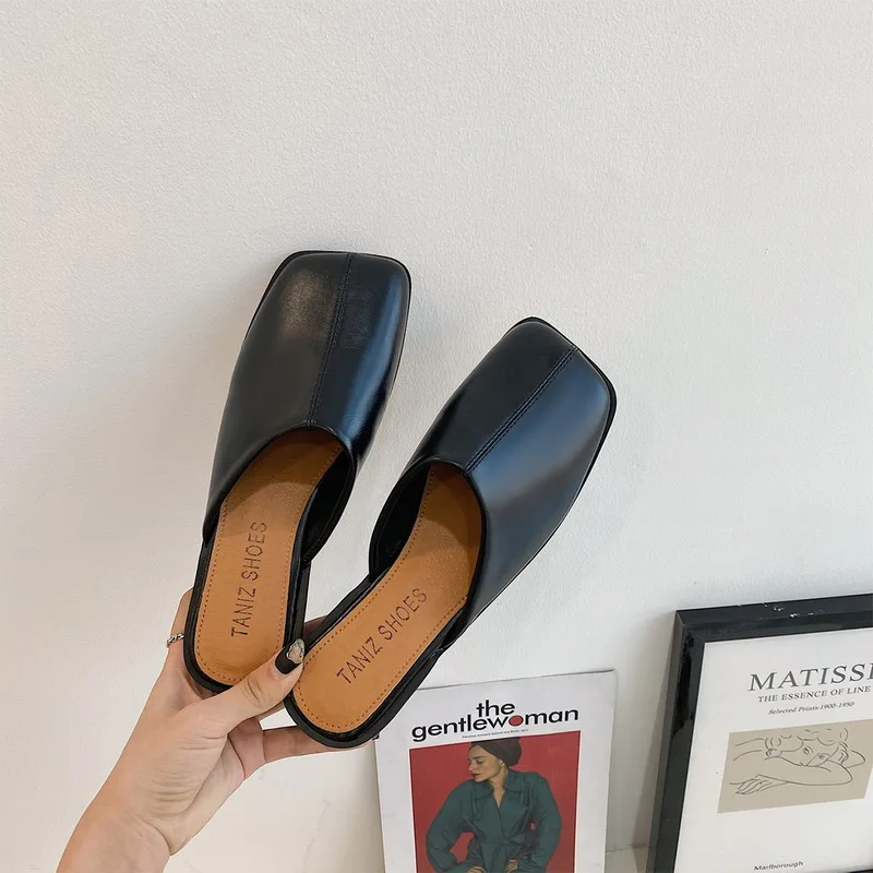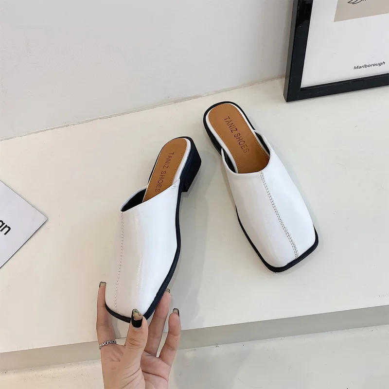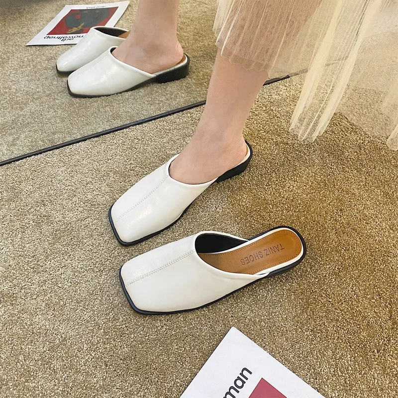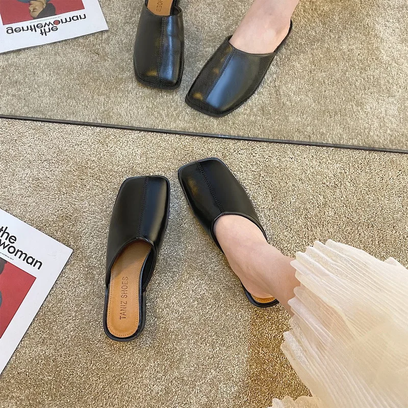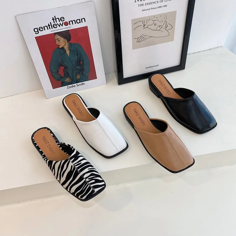Женские туфли-мюли, с рисунком зебры, на низком каблуке, с квадратным носком, уличные шлепанцы, новая весенняя повседневная обувь на плоской подошве, женская обувь