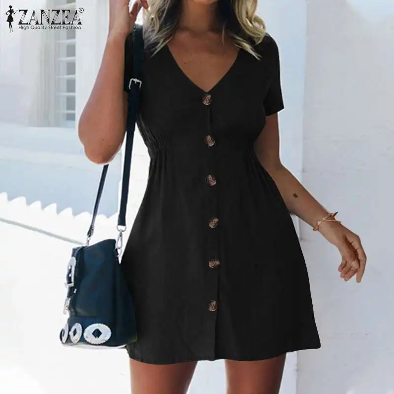 Платье ZANZEA женское вечернее с коротким рукавом, повседневное Мод...