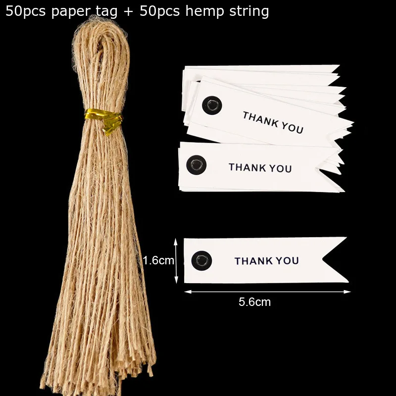 50 шт. бумажных подарочных пакетов, бирки с веревкой, спасибо, ручная работа, спасибо за вас, печать открыток, подвесные бирки, Конфеты Печенье Хлеб упаковочные материалы