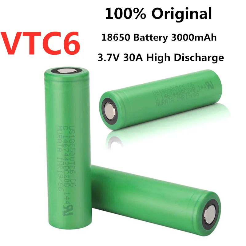 Аккумулятор VTC6 18650 3000 мАч, 3,7 в, 30 А, перезаряжаемые батареи с высоким разрядом 18650 для фонарика US18650VTC6, аккумулятор для инструментов