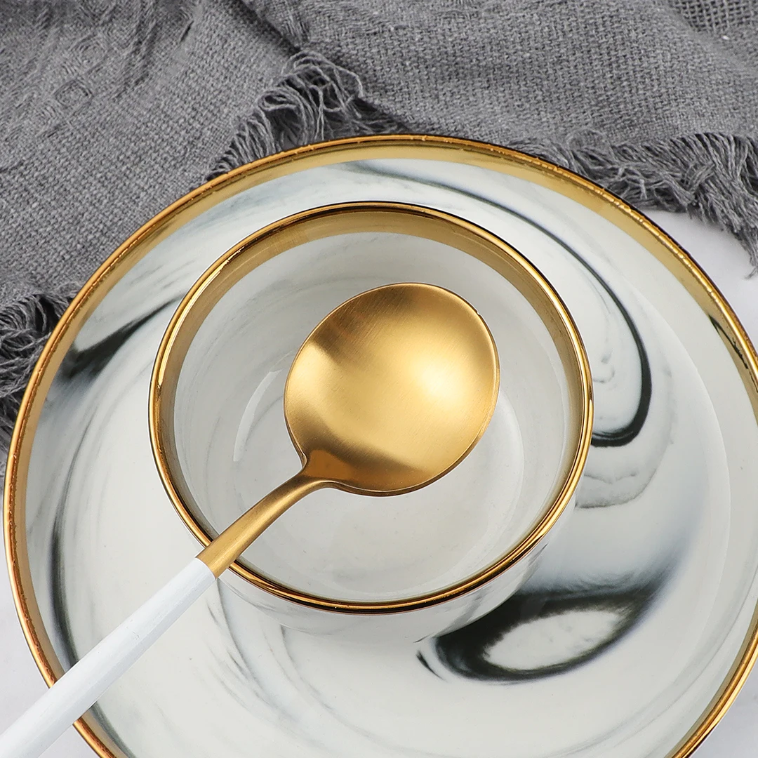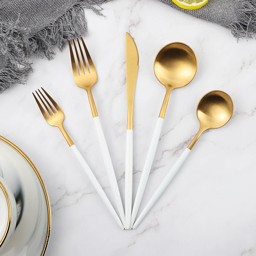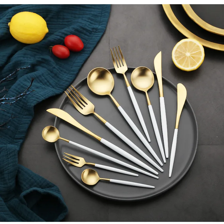 Набор столовых приборов из нержавеющей стали 1810, из белого золота...