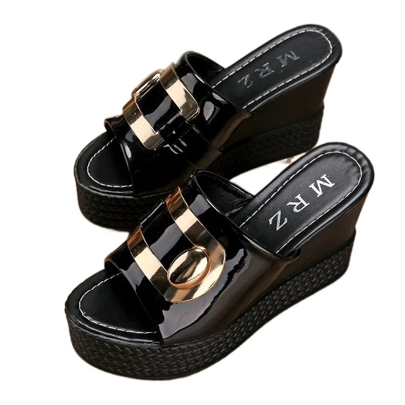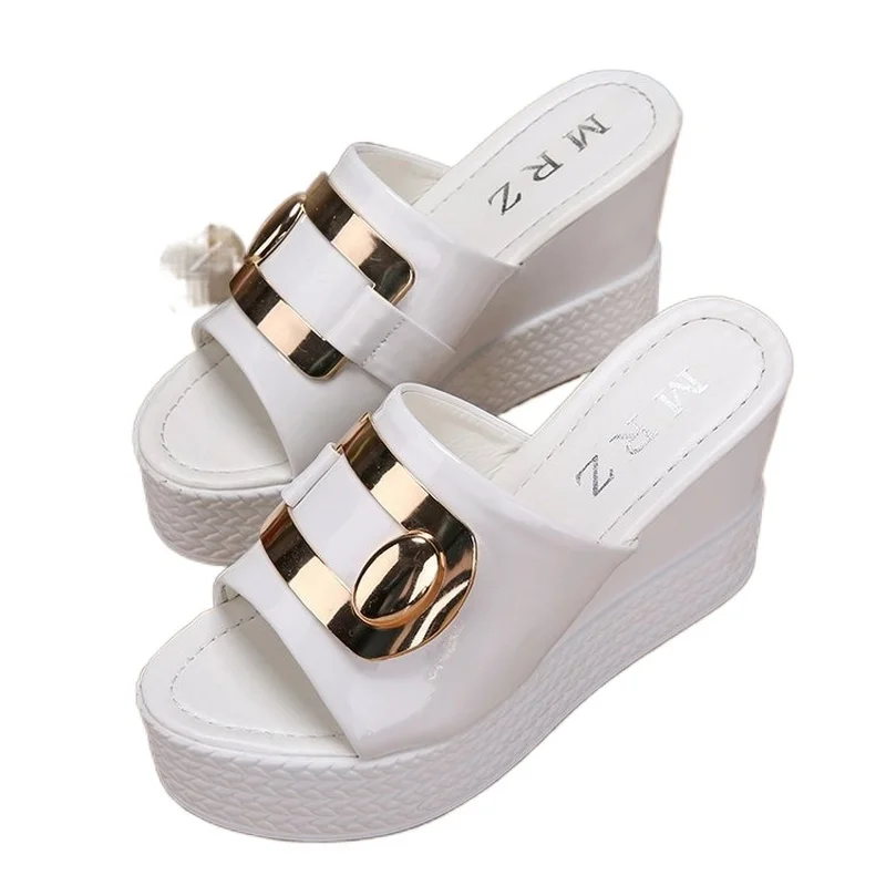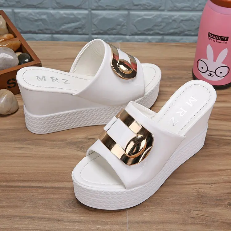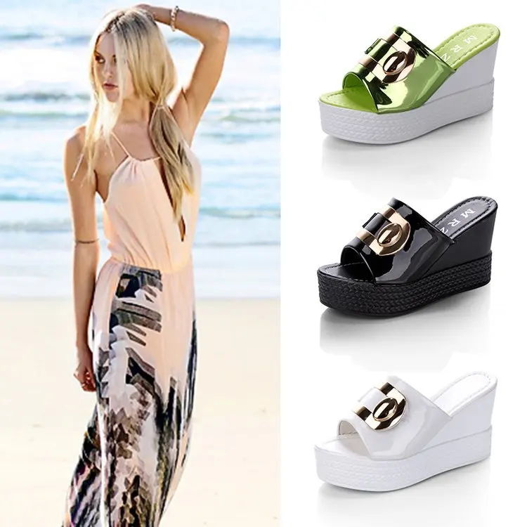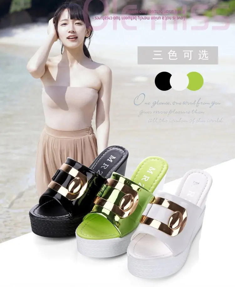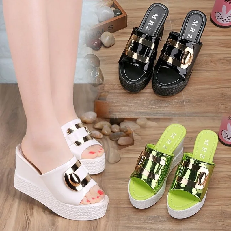 Женские шлепанцы; Лето 2021 г., женская обувь на танкетке, модные сандалии на высоком каблуке, новые, с открытым носком