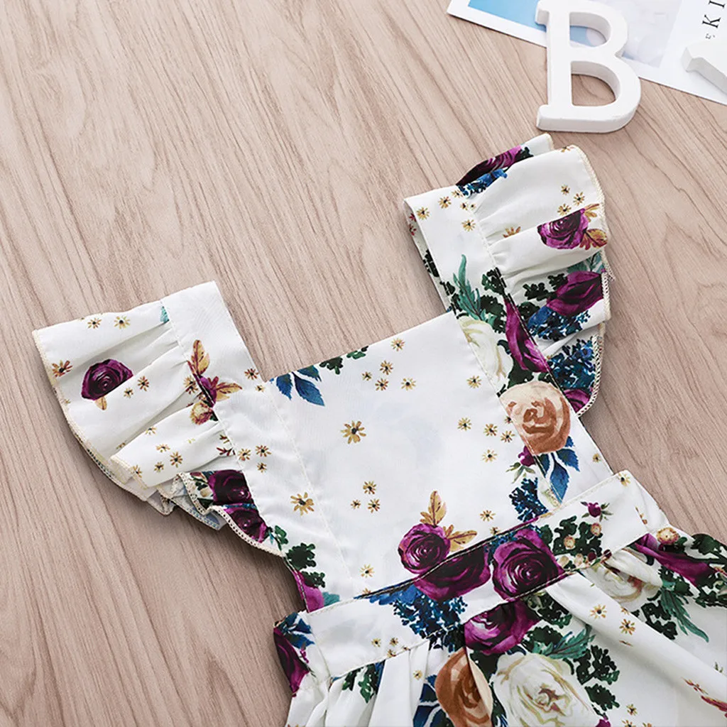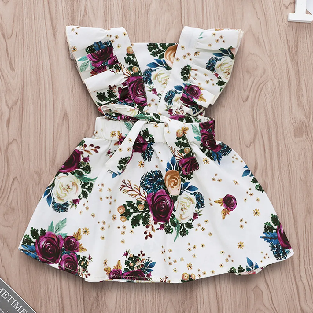 Повседневные платья для девочек 40 #, детское платье для маленьких девочек с цветочным принтом, платье принцессы с оборками, сарафан, летние платья для девочек с цветами