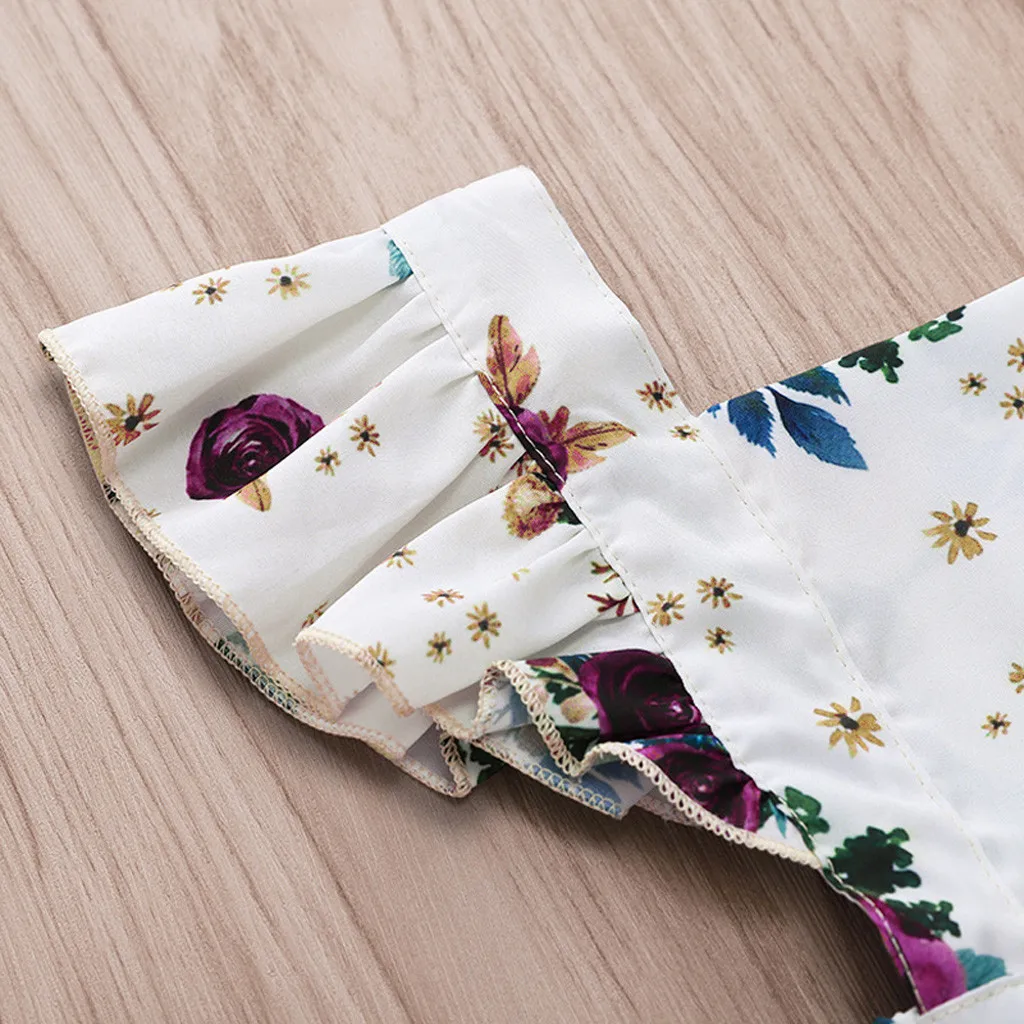 Платье принцессы с оборками и цветочным принтом для маленьких девочек летнее платье