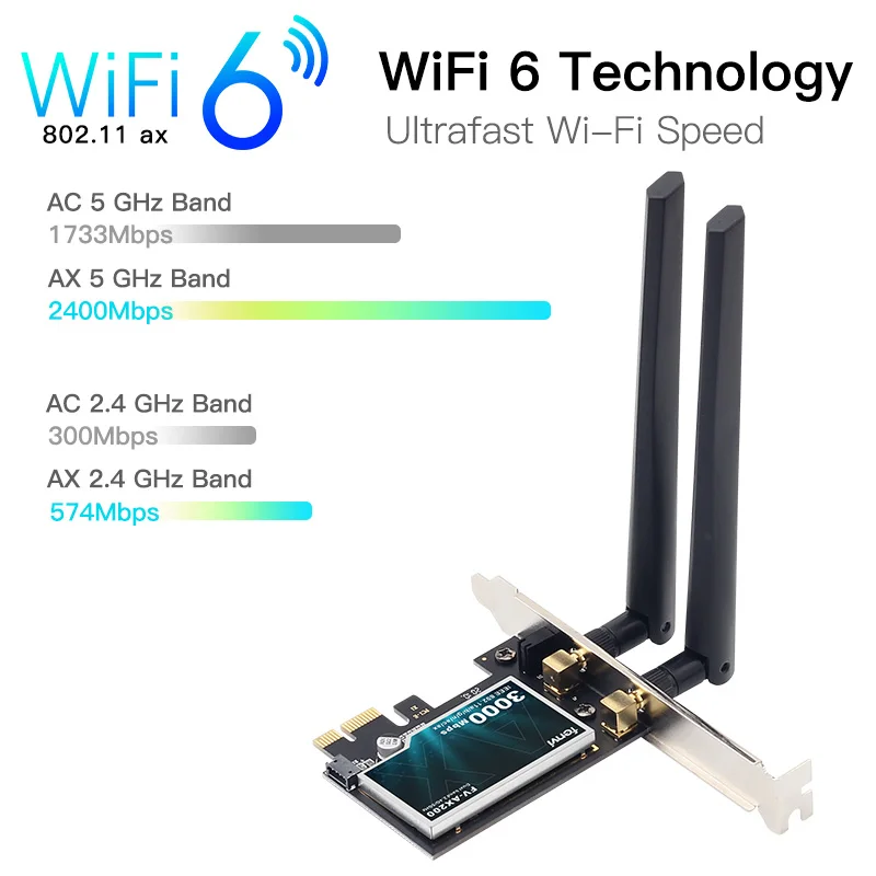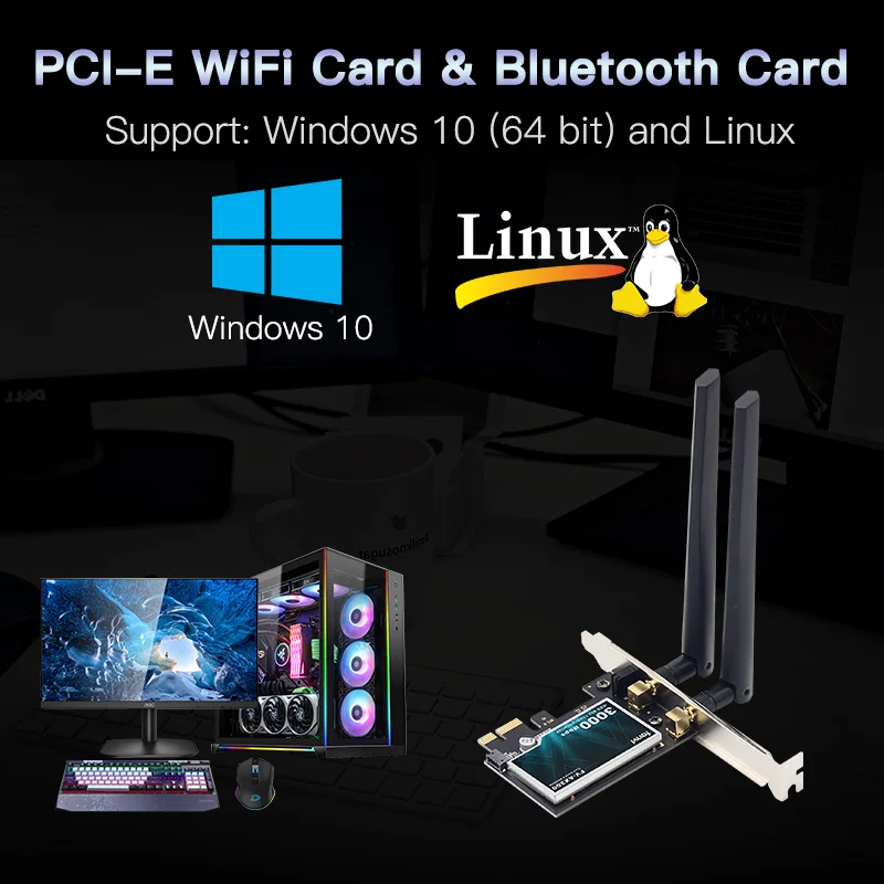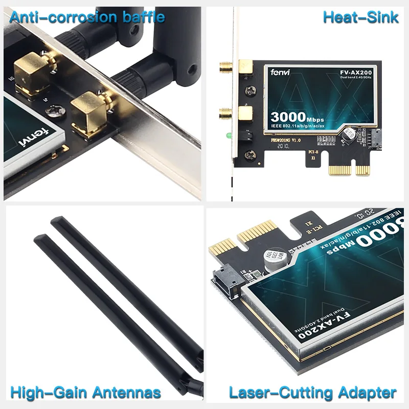 Характеристики: беспроводной адаптер PCIE-AX200 Wi-Fi 6 PCI-E; Intel AX200 802. Набор микросхем 11ax/ac; Двухдиапазонный (2,4G/5G), Wifi + Bluetooth 5,0; Скорость до 2400 Мбит/с (маршрутизатор должен поддерживать 802.11ax); Поддержка MU-MIMO; поддержка только Windows 10*64 бит, Linux; Мгновенное обновление Wi-Fi для вашего рабочего стола; Мощная конструкция для большего покрытия сигнала; Загрузка драйвера: Драйвер CD или с веб-сайта fenvi или веб-сайта Intel (Intel AX200). Спецификация: бренд: fenvi; Модель: PCIE-AX200 PCI-E PC wifi адаптер (см. Подробности); Chipest: Микросхема Intel AX200; WiFi с Bluetooth-compatible5.0; Стандарт IEEE: 802.11ax/ac/a/b/g/n; Двухдиапазонный 2,4 ГГц-300 Мбит/с/5Ghz-2400Mbps; Примечание: Скорость до 2400 Мбит/с (маршрутизатор должен Поддержка 802.11ax); Поддержка MU-MIMO; операционные системы: Поддержка только Windows 10*64 бит и Linux; Совместимость с: почти компьютером с PCI Express (разъем PCI-E 1X/4X/16X); Специально разработанный радиатор обеспечивает стабильную и надежную непрерывную работу; Антенны с высоким коэффициентом усиления 6DBi обеспечивают лучший прием сигнала; загрузка драйвера: вы можете скачать драйвер на веб-сайте fenvi или попросить нас.