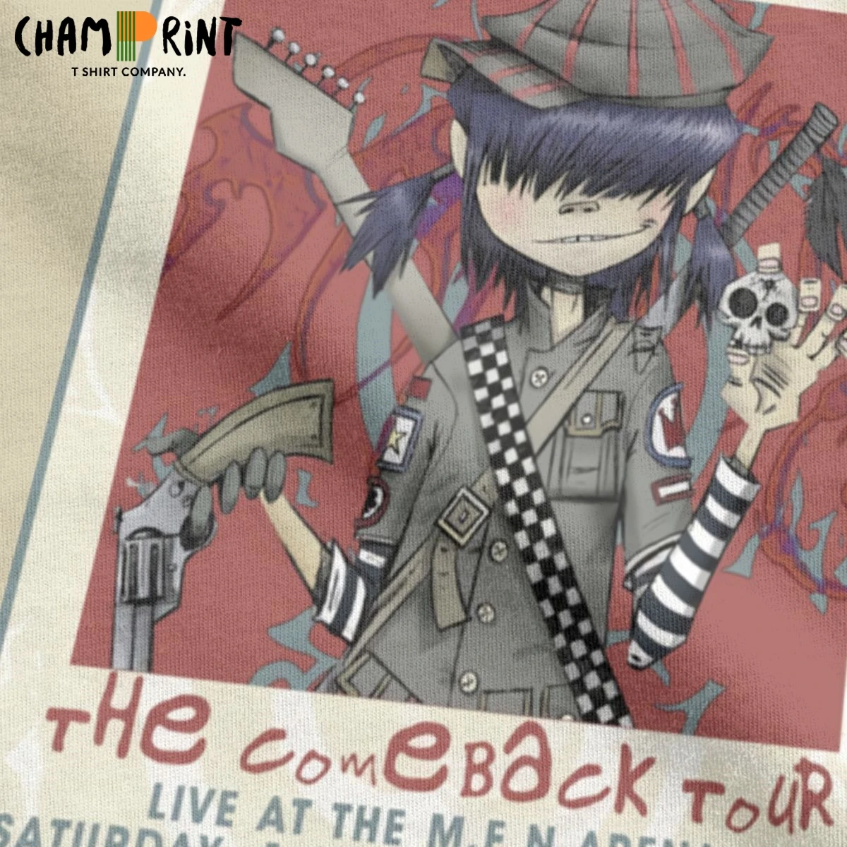 Мужская футболка Gorilaz возвращение тур для досуга Чистый хлопок футболка с коротким рукавом рок футболка без рукава, детское платье с круглым вырезом, одежда оригинал
