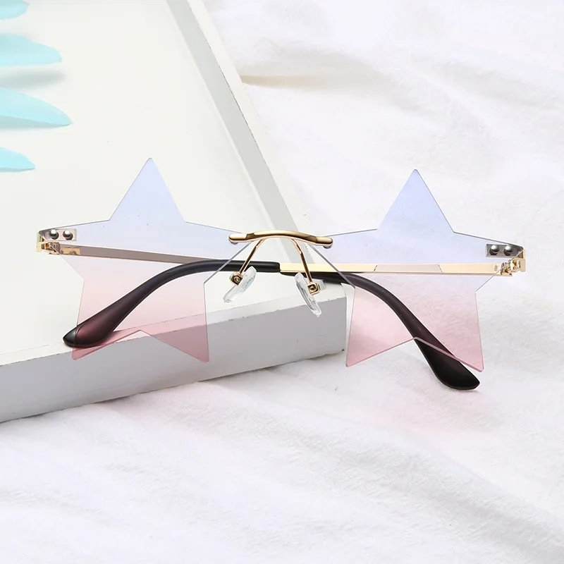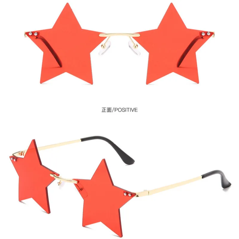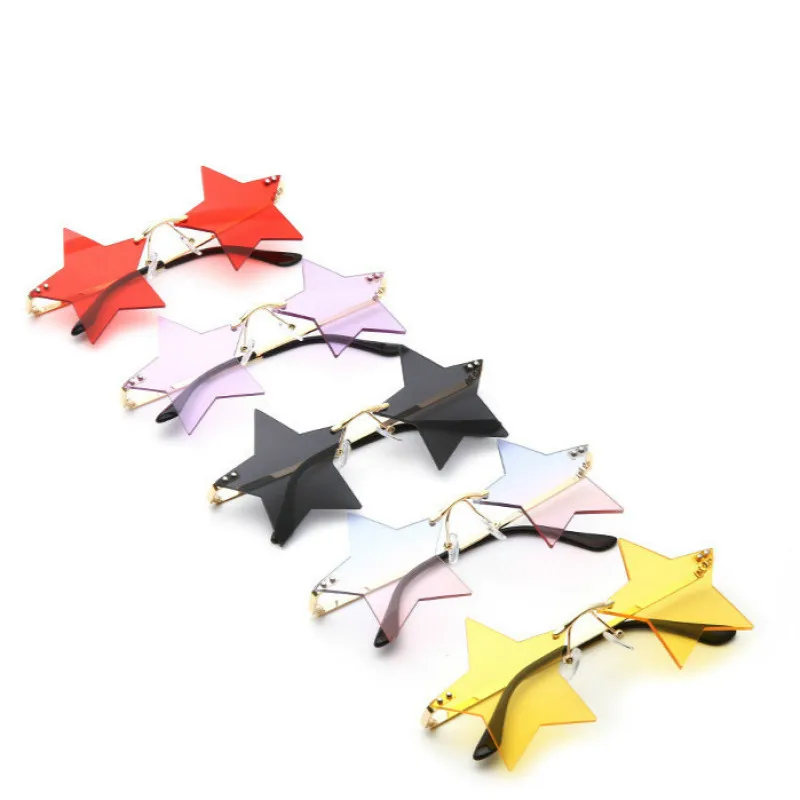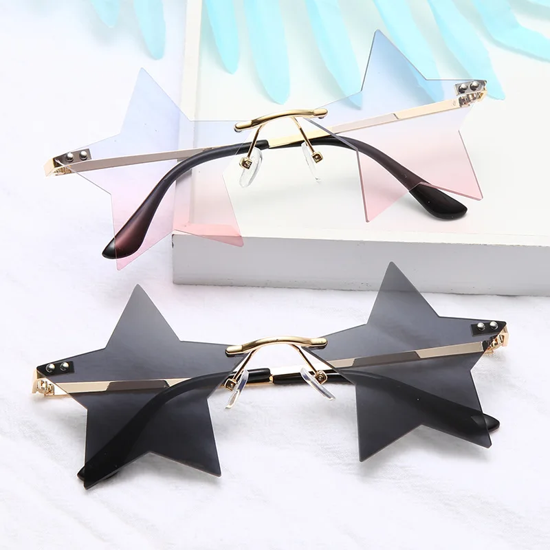 Солнечные очки с пятиконечными звездами для женщин, индивидуальный дизайн, без оправы, в форме большой звезды, с забавными линзами в стиле стимпанк, UV400