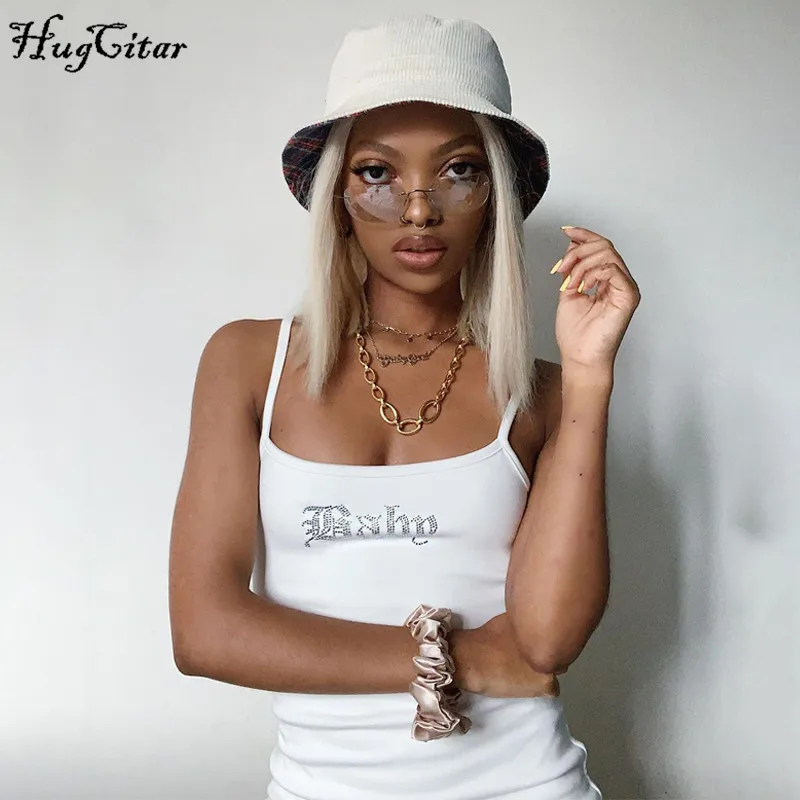 Мини-платье Hugcitar женское на бретелях-спагетти, пикантное модное эластичное с буквенным принтом, одежда для улицы, Y2K, лето 2021