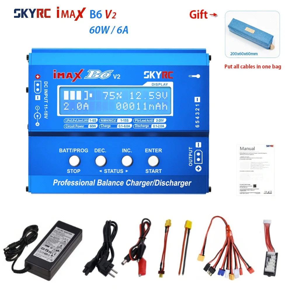 Балансирующее устройство SKYRC IMAX B6 V2 B6V2, устройство для заряда аккумуляторов Lipo NiMh, 60 Вт, 6A, с адаптером
