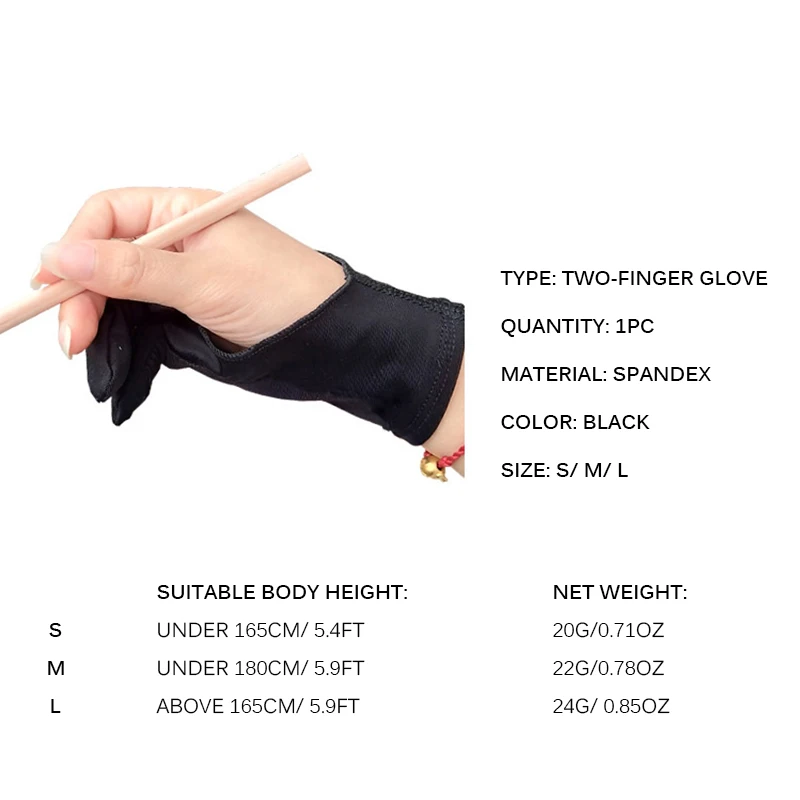 Перчатка с двумя пальцами может покрыть ваш безымянный палец, маленький палец и половину ладони, который обладает хорошей защитой от загрязнения, идеально подходит для масляной живописи, акварели, гуаши, традиционной китайской живописи и эскиза.
