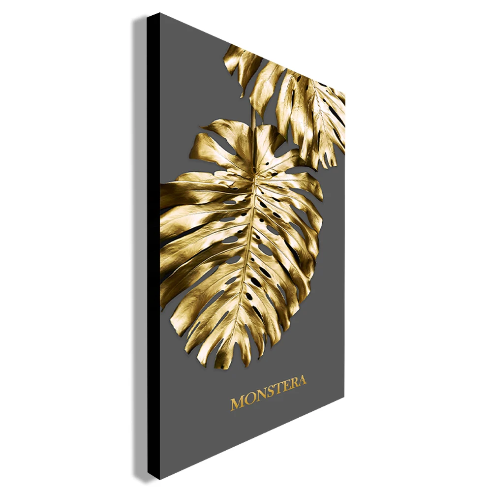 Скандинавская Золотая Абстрактная Картина на холсте с листьями и цв...