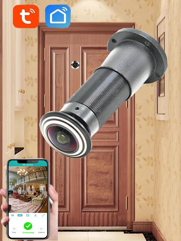 Дверная камера WiFi мобильный телефон приложение для просмотраСпецификация:* Функция Wi-Fi: Да, удаленный мониторинг, смартфон везде.* Совместимость с iPhone, iPad, Android phoneand products* Дверной глаз видеокамеры Аудио Видео рекордер* Функция фотографирования.* Видеорегистратор с детектором движения.* Широкий угол: 150 градусов* Дата и время* Разрешение видео: 1920x1080PHD* Формат видео: AVI* Камера: 2MP CMOS сенсор SONY IMX* Автоматический баланс белого* Фото: jpeg* Микрофон: встроенный (синхронная запись аудио и видео сигналов)* Время работы: 24 часа (подключите его к питанию все время)