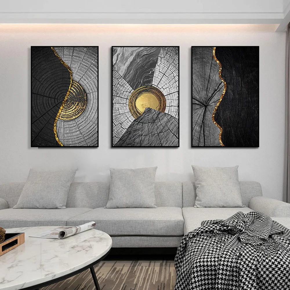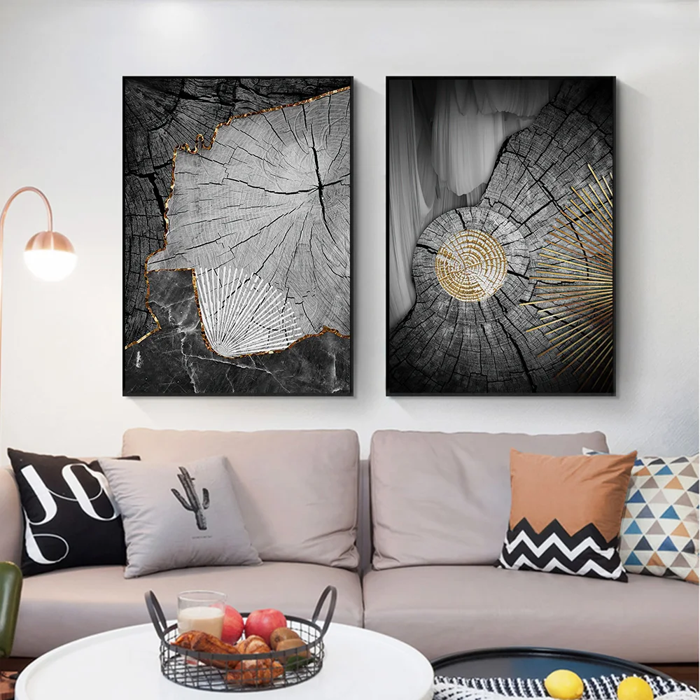 Абстрактная текстура золотого и черного дерева, холст, постеры и принты, современные настенные картины в скандинавском стиле для гостиной, домашний декор