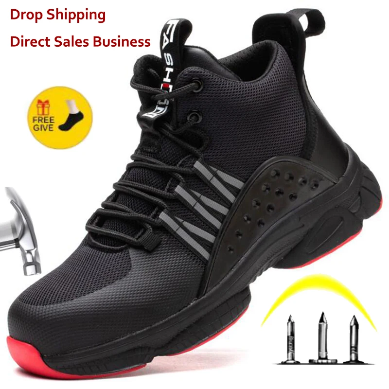 Кроссовки мужские со стальным носком, дышащие непробиваемые, легкие рабочие ботинки, защита от ударов