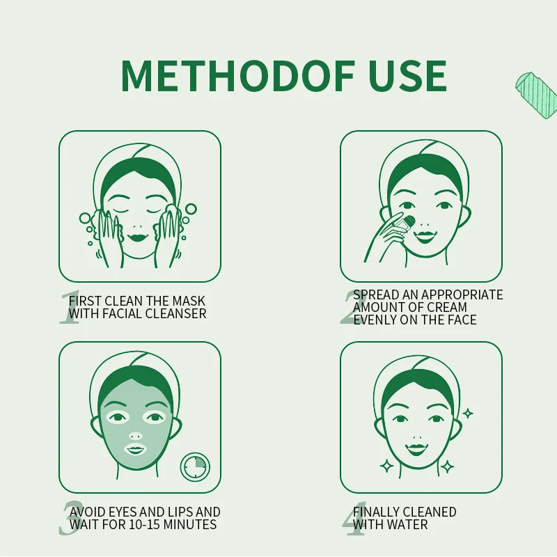 Используйте Очищающую маску зеленого чая с интервалом времени:Жирная кожа: Рекомендуемый интервал использования 2-3 раза в неделю.Смешанная кожа: рекомендуется использовать 2-3 раза в неделю для зоны T и 1-2 раза в неделю для зоны U.