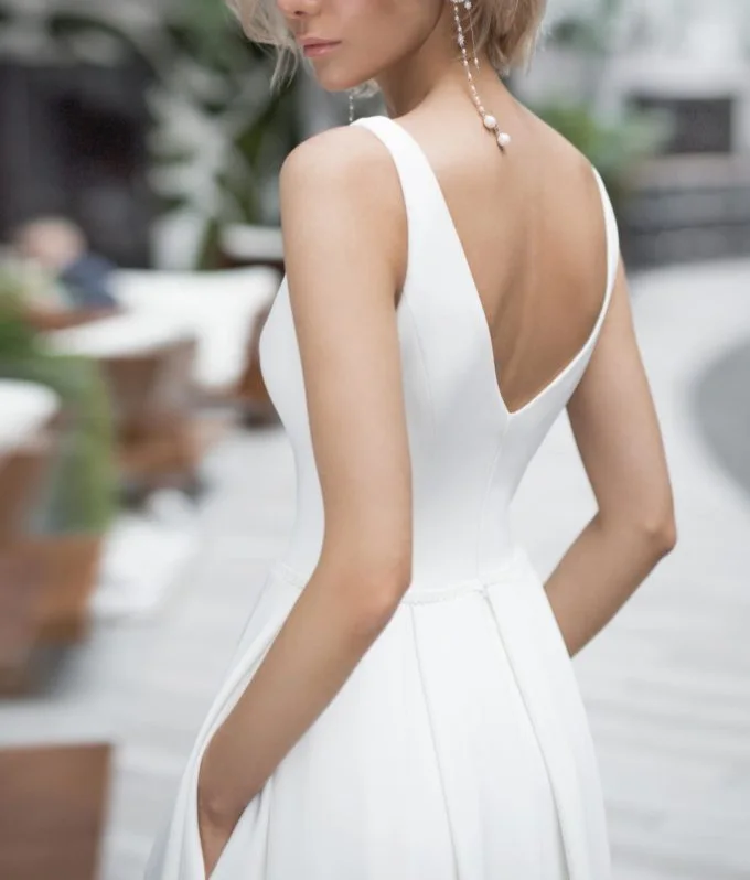 Атласное свадебное платье, свадебное платье а-силуэт, свадебное плать