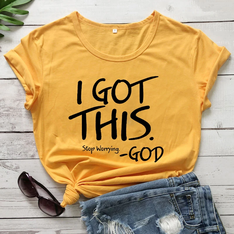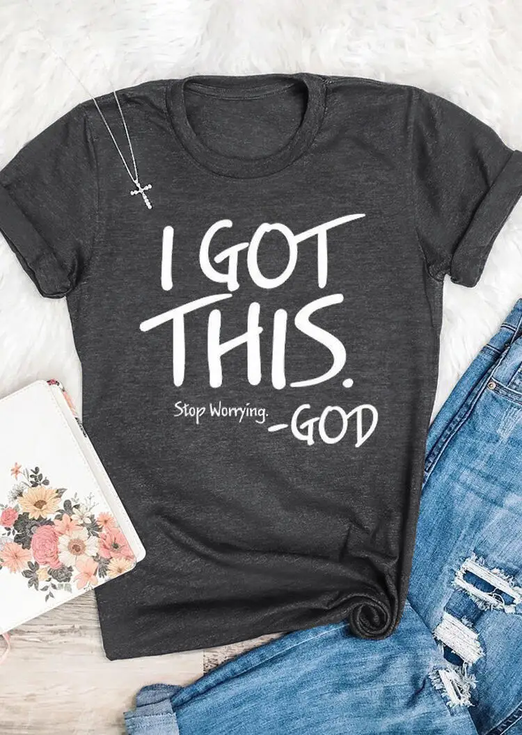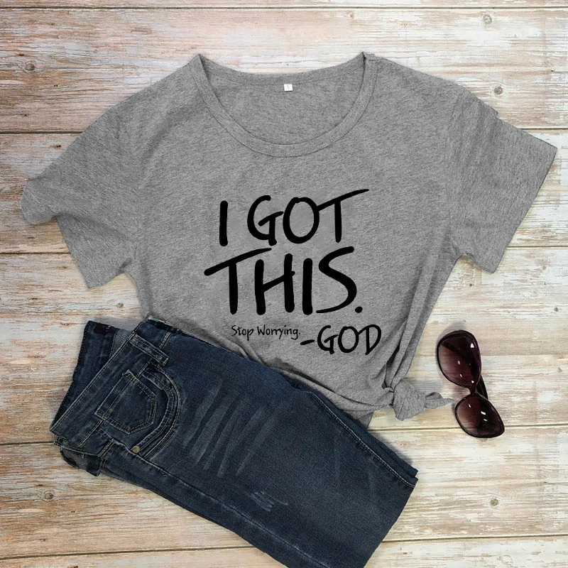 Женская Винтажная футболка в стиле гранж, с надписью I Got This Stop worry God, в христианском стиле, с изображением веры, цвет серый, топы в готическом стиле