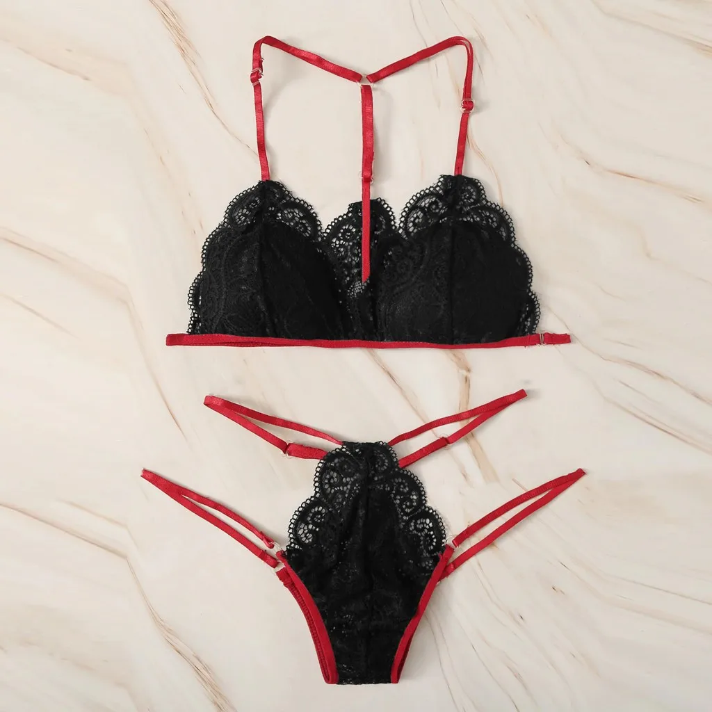 Сексуальное кружевное белье в цветочек бюстгальтер + стринги Набор Babydoll Ночное белье нижнее белье