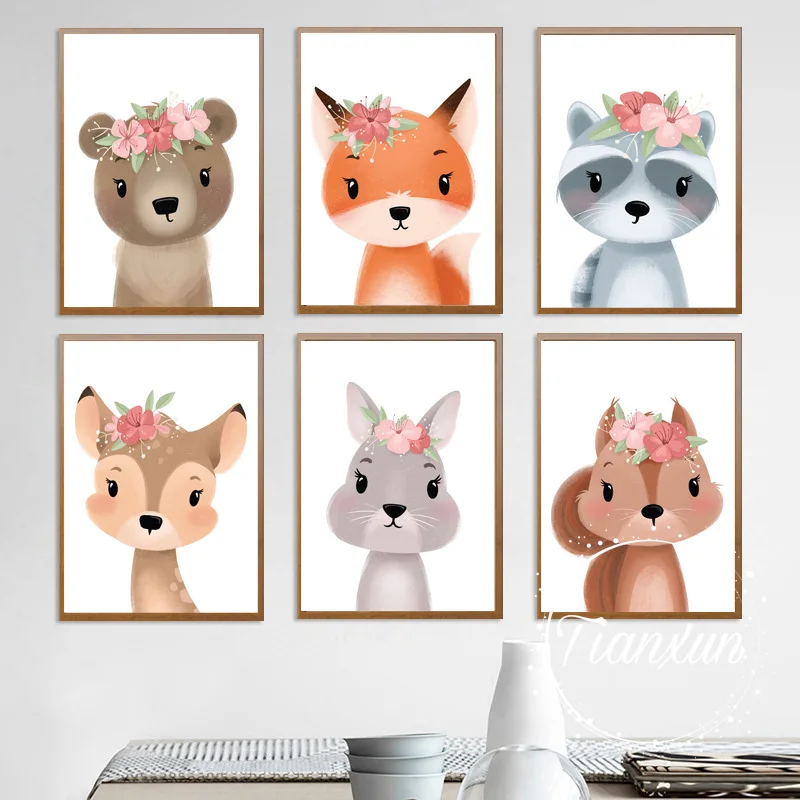 Кролик, лиса, сова, Пупс, ежик, детская настенная Картина на холсте...