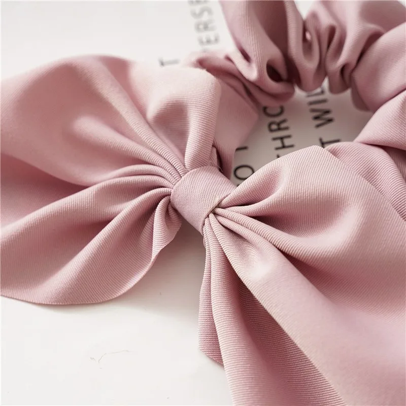 Твердые Цвет узел заячьи ушки, лента, обтянутая тканью; Прическа хвостик; В наличии для леди модное Шелковое Розовое нарядное платье Эластичная лента для девочек заколка-кольцо для волос кольцо десен