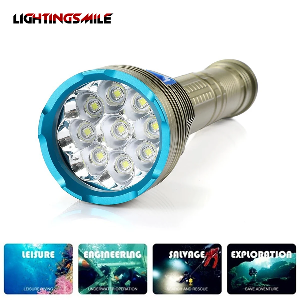 Ультра яркие красныезеленые9 CREE XM-T6L2 светодиодный подводный светильник Фонари высокое Мощность вспышка для подводного погружения и светильник IP8 тактика погружения фонарь 26650 Открытый лагерь
