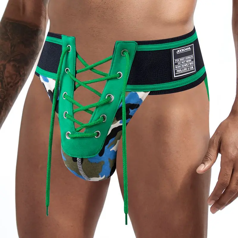 Стринги JOCKMAIL мужские кружевные с заклепками, 2 шт.упаковка, джоки, бандаж, камуфляжный зеленый Экстра широкий пояс, спортивное пикантное нижнее белье для взрослых