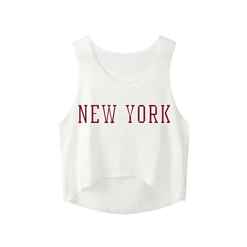 Кроп-Топ женский с надписью NEW YORK, пикантный облегающий хипстер из хлопка, Забавный Топ для девушек, короткая майка, белый черный, на лето