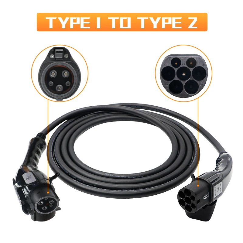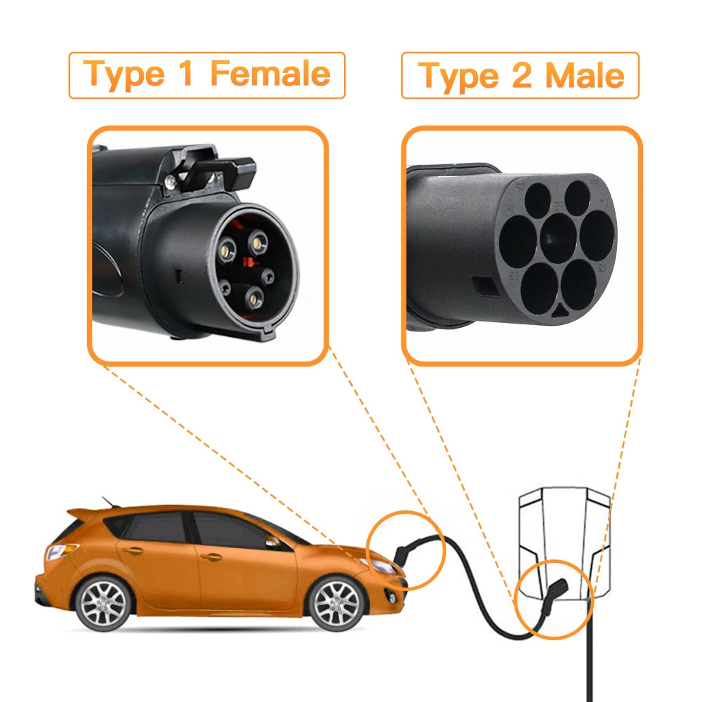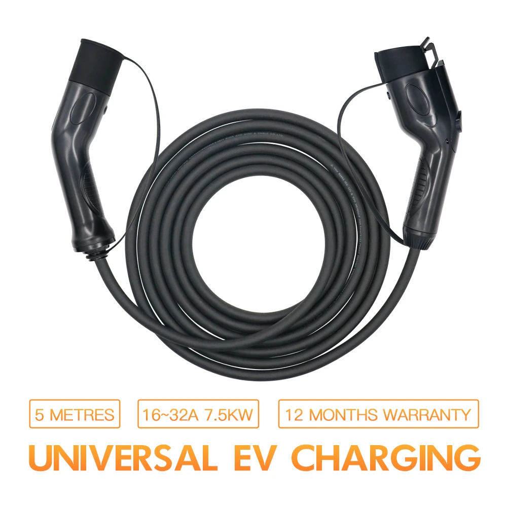 Зарядный кабель для электромобиля, кабель для зарядки с разъемами типа 1 Мама и папа типа 2, 32А, 7,2 кВт, длина 5 м, EVSE