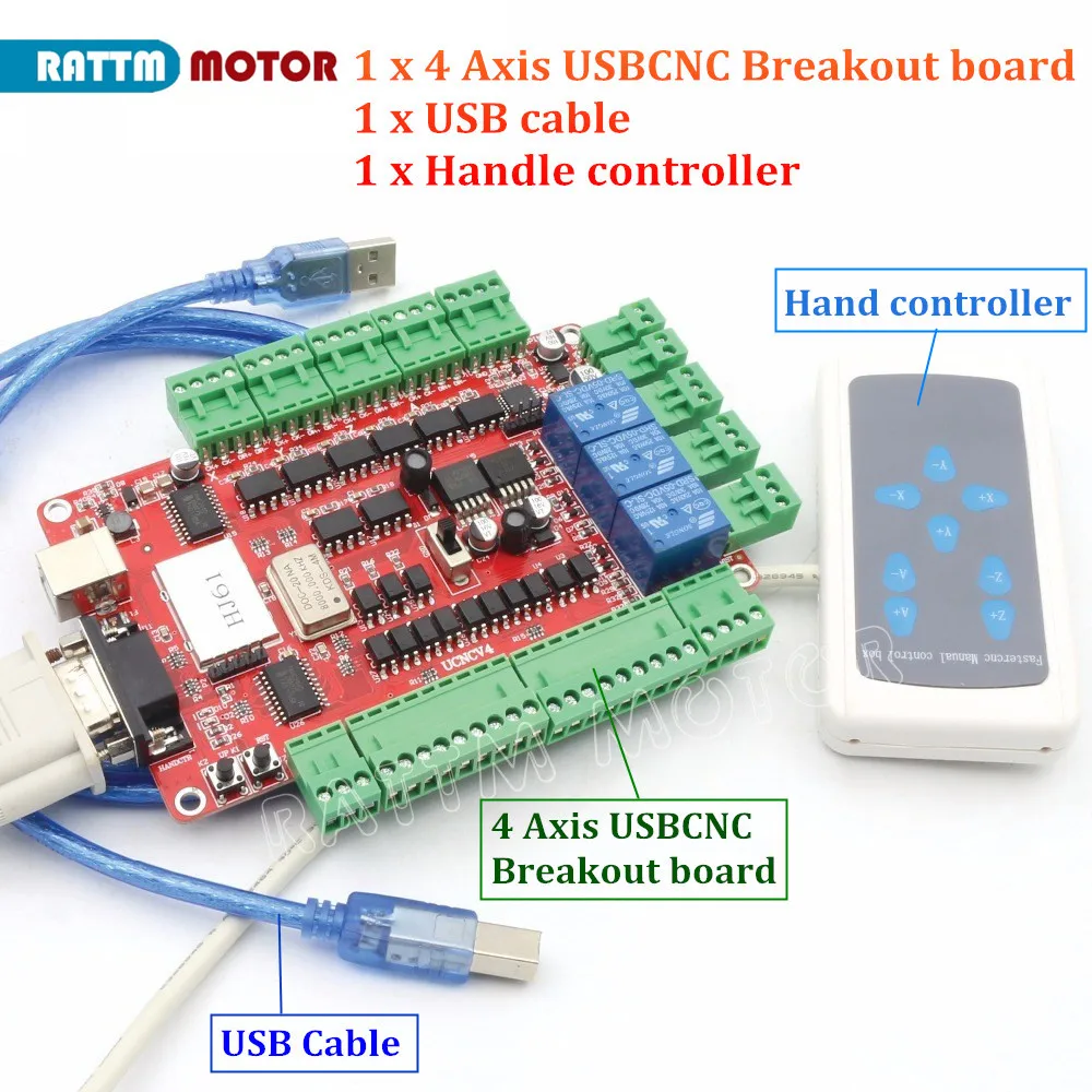 4 оси USB CNC коммутационная плата интерфейсная плата управление ler USB CNC с ручкой USB-порт для ЧПУ Nema23 57 шаговый двигатель