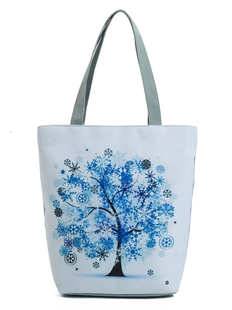 Модные женские сумки через плечо с растительным принтом, вместительная Экологически чистая многоразовая сумка для покупок с голубым деревом, уличная Складная женская сумка-тоут