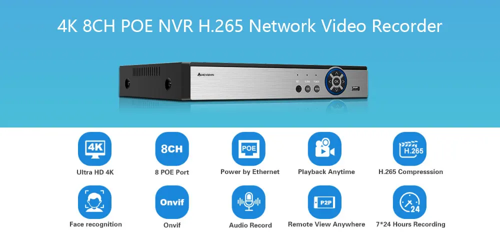 8CH POE NVR ResolutionH.265 8CH 8.0MP NVR