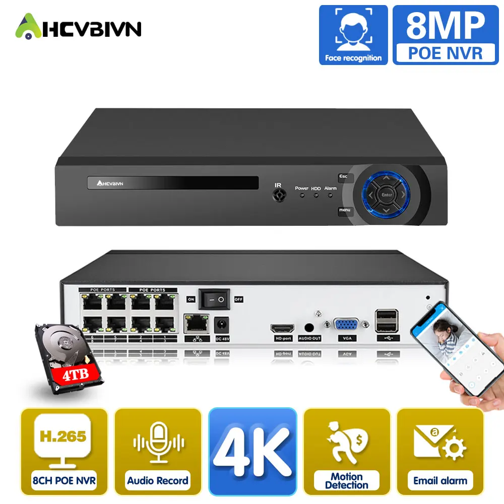 HD 4K Nvr 8-канальный видеорегистратор с поддержкой Poe сетевой системы охранного видеонаблюдения Регистраторы Поддержка Ip Камера видеонаблюдение Регистраторы 8mp безопасности Камера s Nvr Rj45