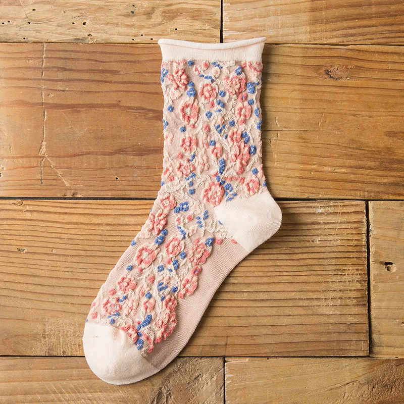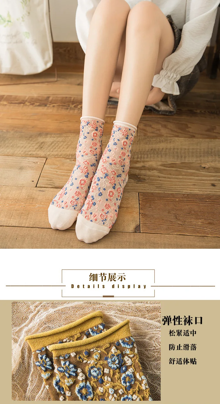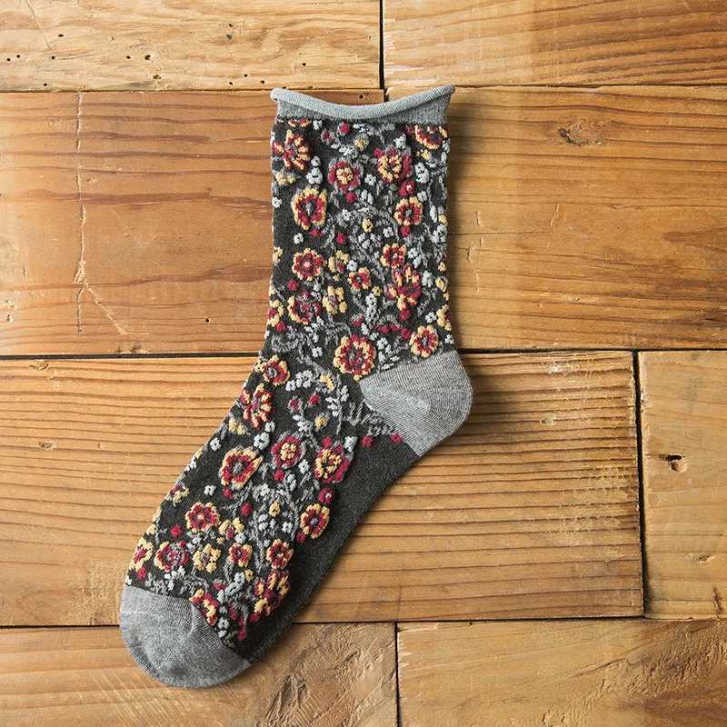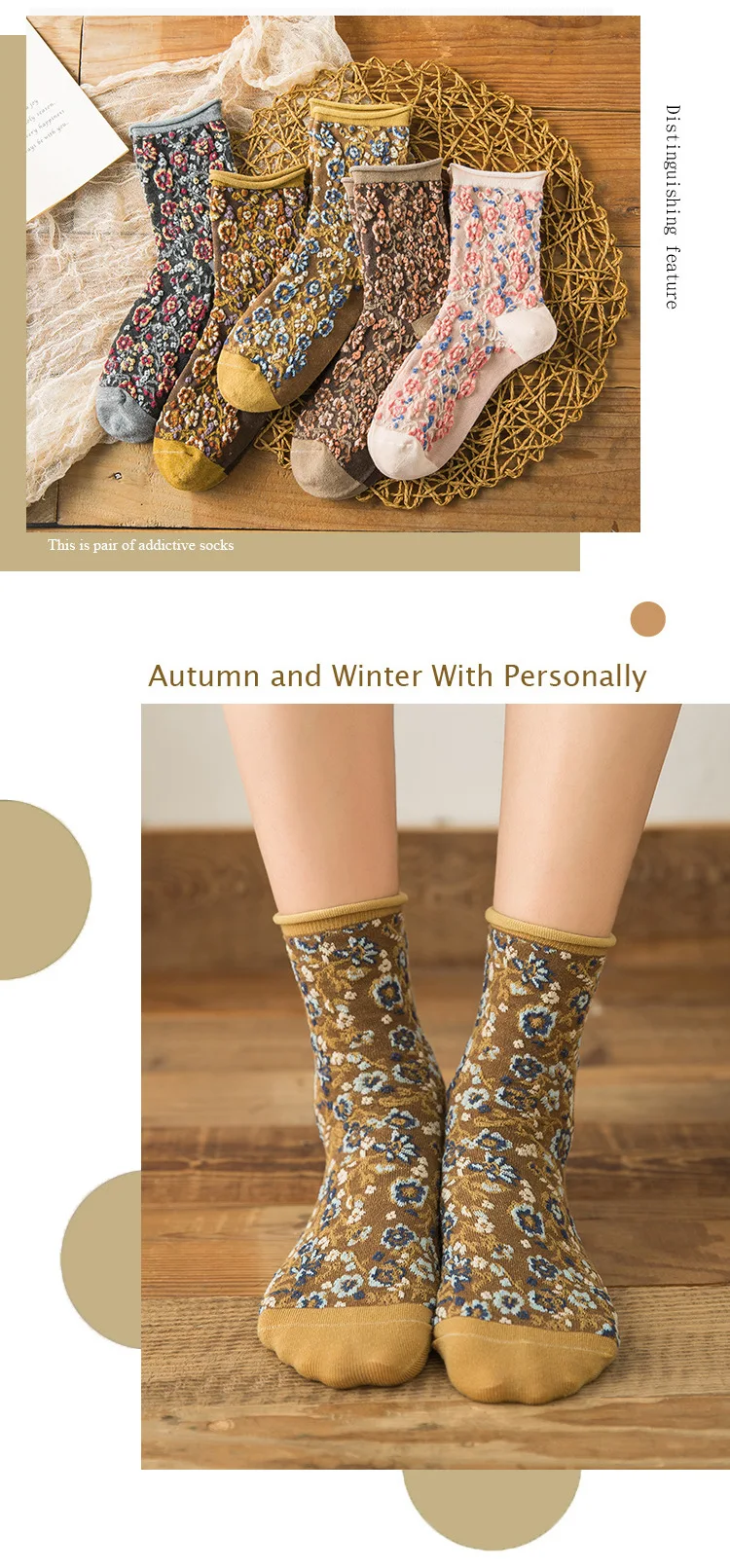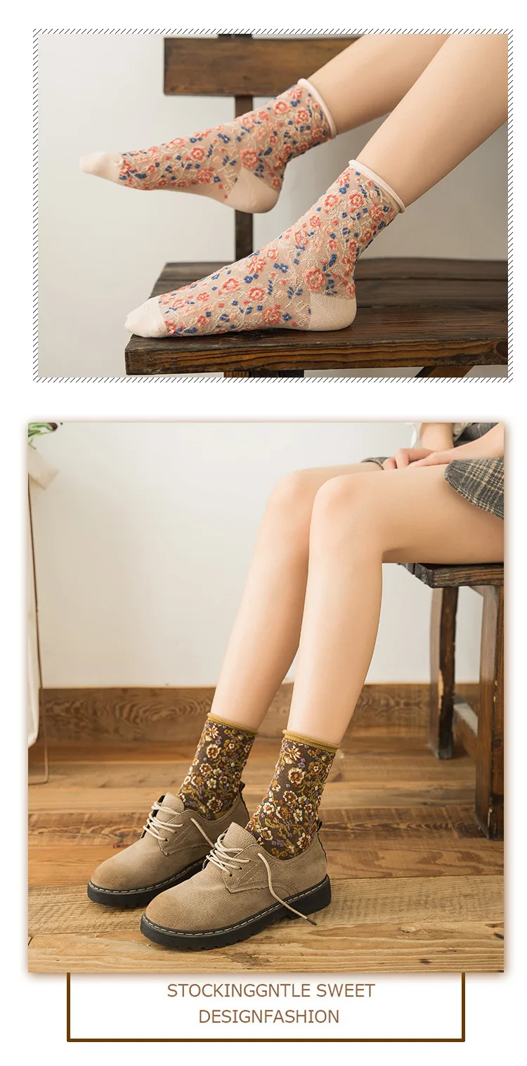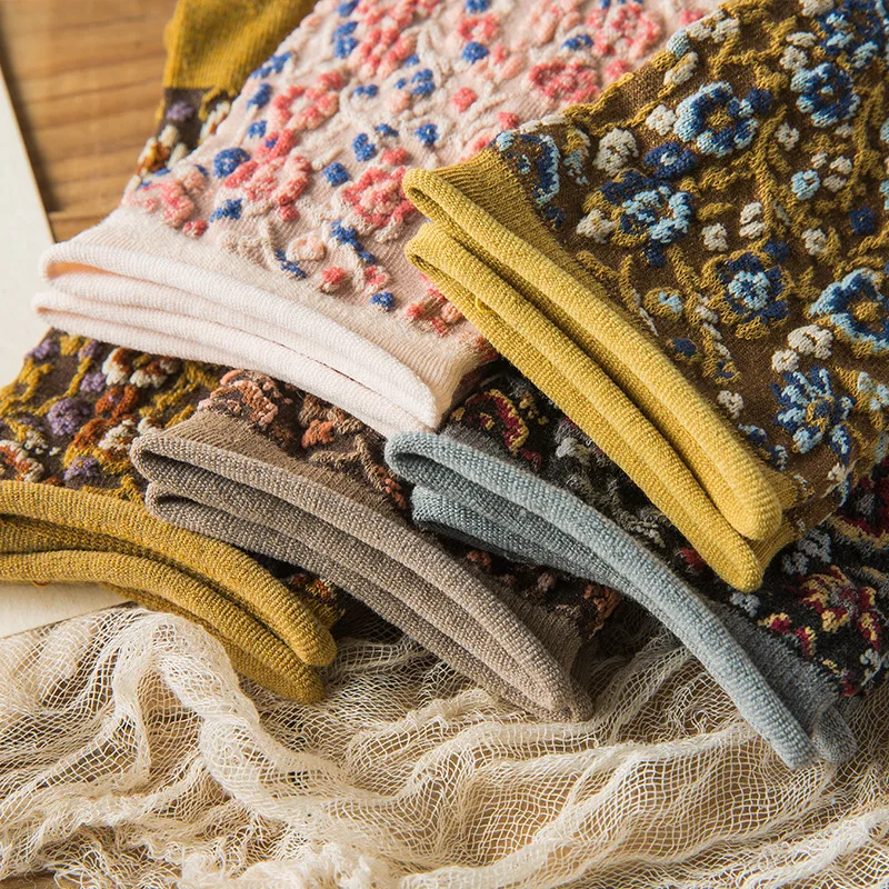 3 пары, женские хлопковые носки в полоску с цветочным принтом