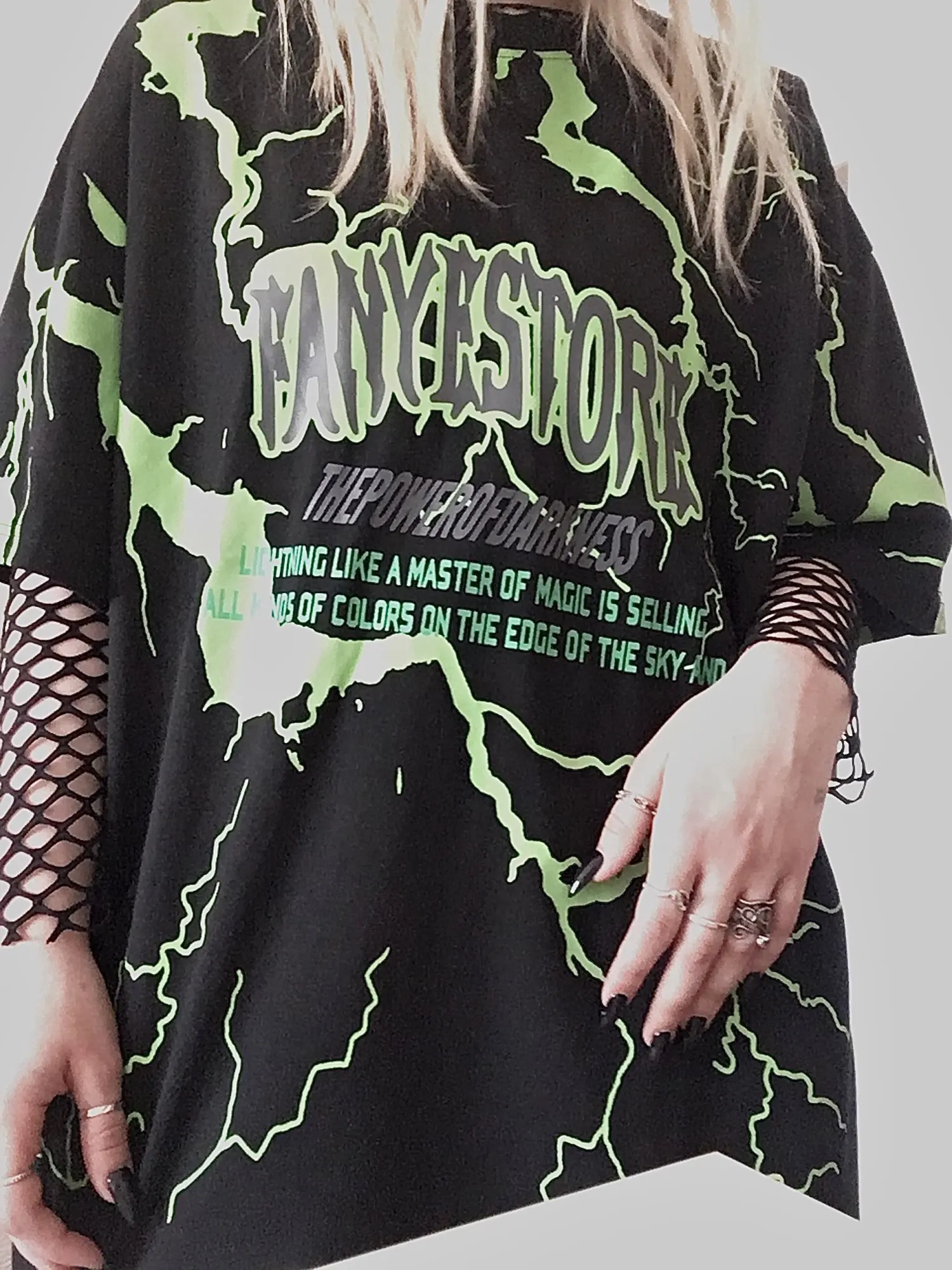 Футболка женская в готическом стиле, свободный винтажный Повседневный Топ в сетку, летняя