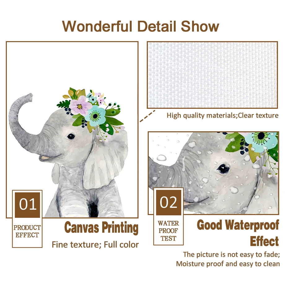 Слон жираф кролика, енота лиса детская стена искусство холст картин...