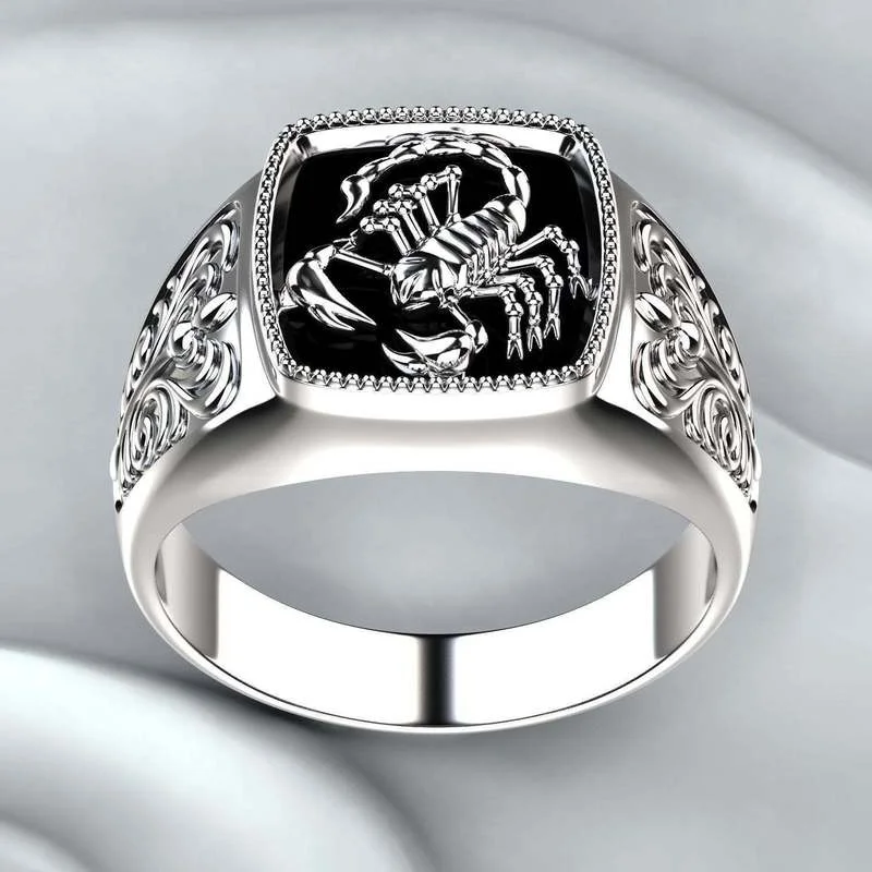 Мужское кольцо с тиснением в виде скорпиона, посеребренное украшени...