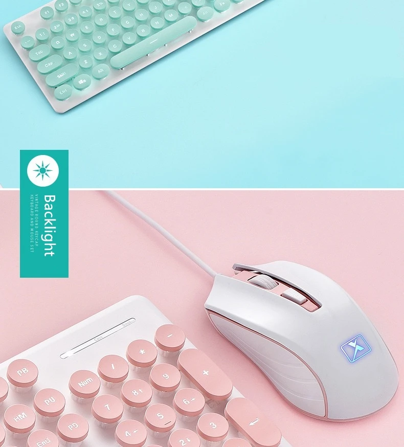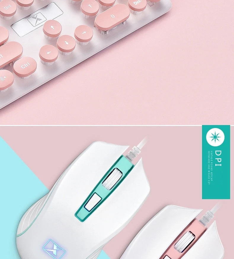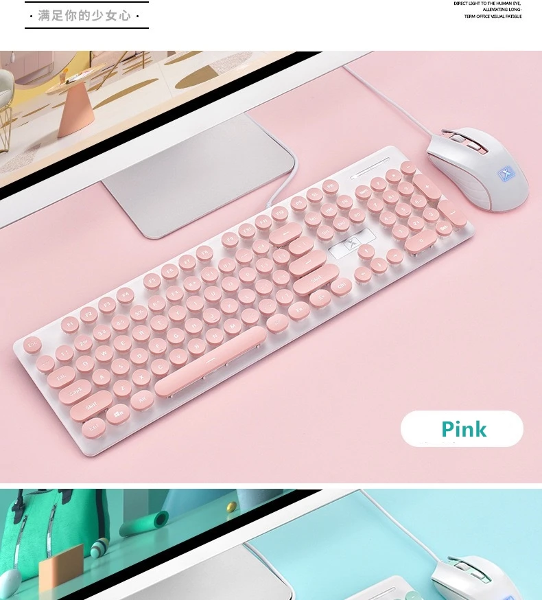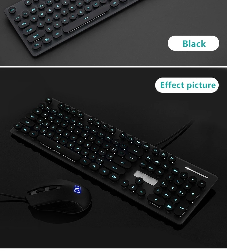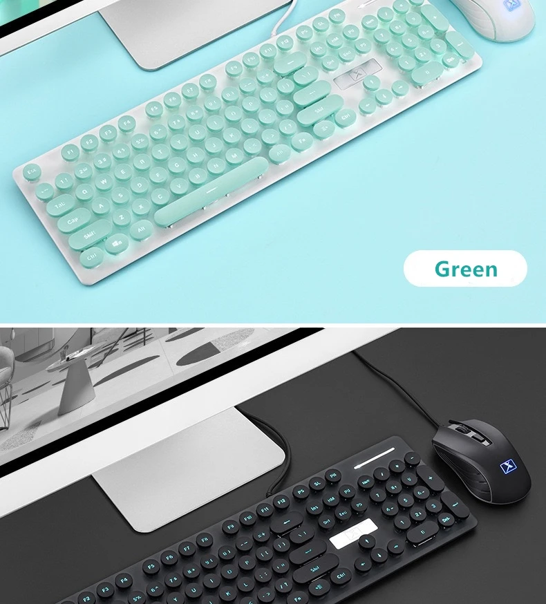 Геймерская клавиатура, мышь, набор, проводная, стимпанк, винтажная, игровая с круглой клавишей, кепка, мультимедийная кнопка, клавиатура, мышь, набор