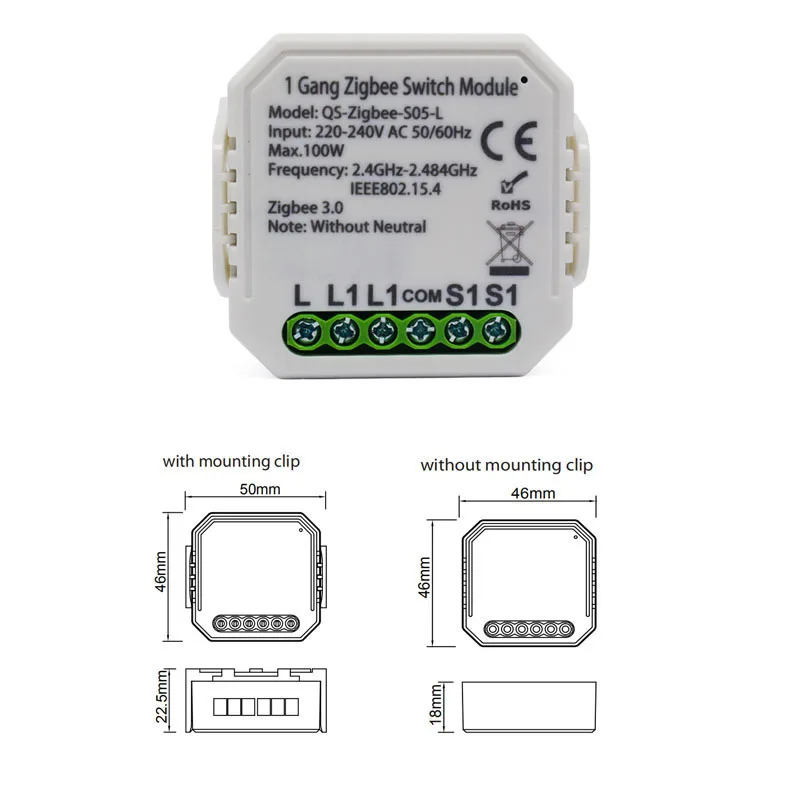 Номер моделиQS-Zigbee-S05-L / QS-Zigbee-S04-2C-L