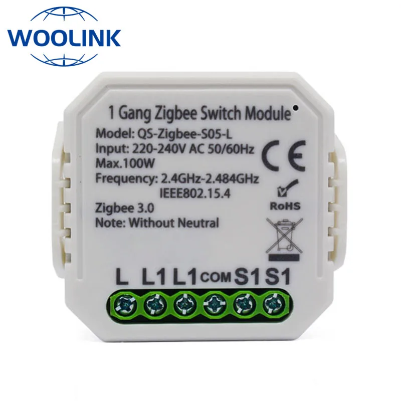 Умный модуль переключателя Woolink Zigbee, реле с нейтральным переключателем на 1, 2 клавиши, двухстороннее Беспроводное управление с поддержкой Zigbee2MQTT, Alexa, Google Home