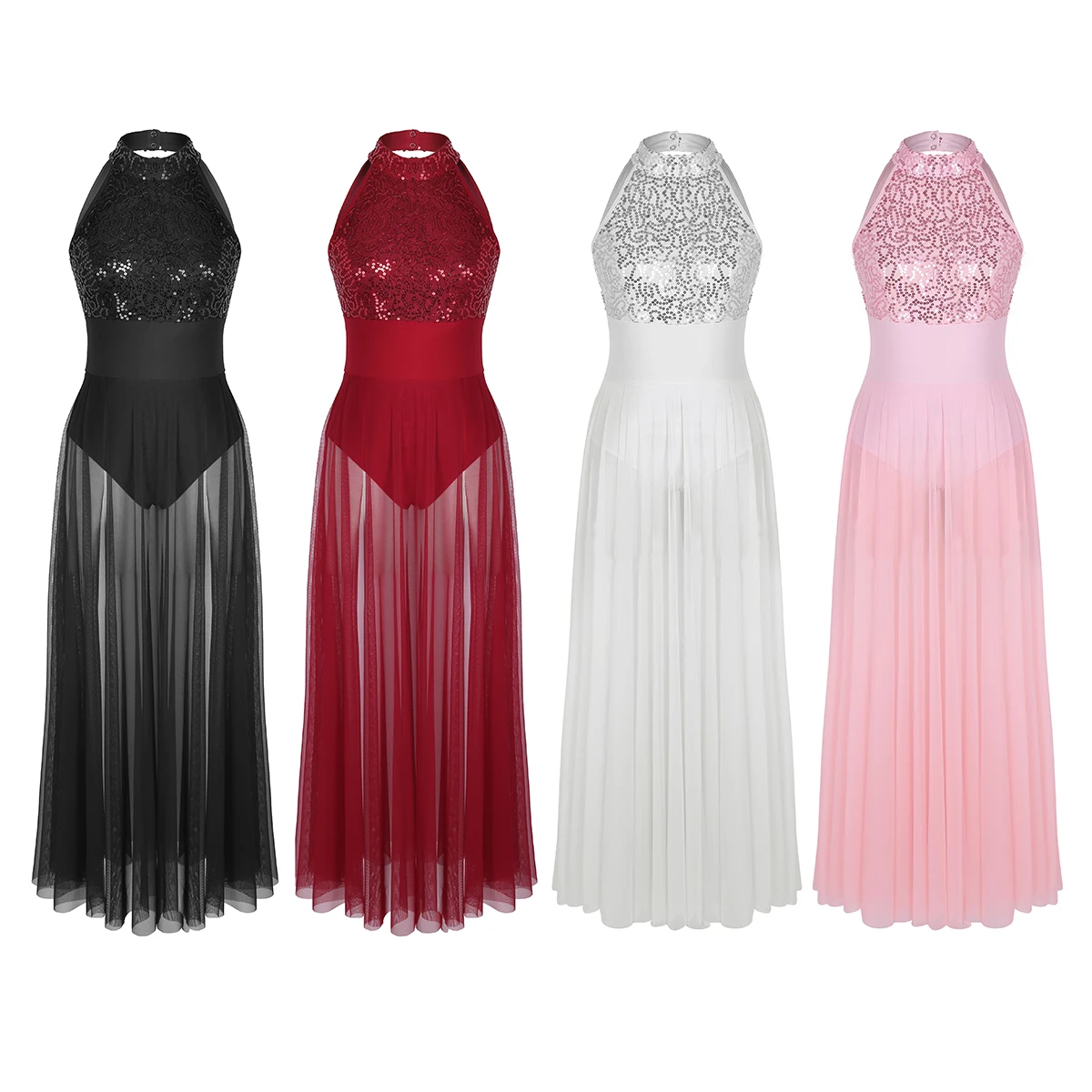Женское блестящее балетное платье-пачка, длинное Сетчатое платье макси для взрослых, для Бальных представлений, Современное женское платье